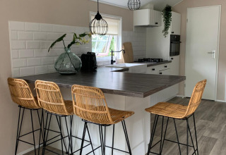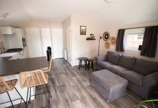 Buiten heb je een eigen terras met tuinmeubilair, waar je zalig kan ontspannen terwijl de kinderen zich uitleven op de kindvriendelijke camping. Met voorzieningen zoals een verwarmd zwembad, binnenspeeltuin en animatie tijdens het hoogseizoen is dit de ideale plek voor een zorgeloze vakantie in het groene Limburgse landschap.