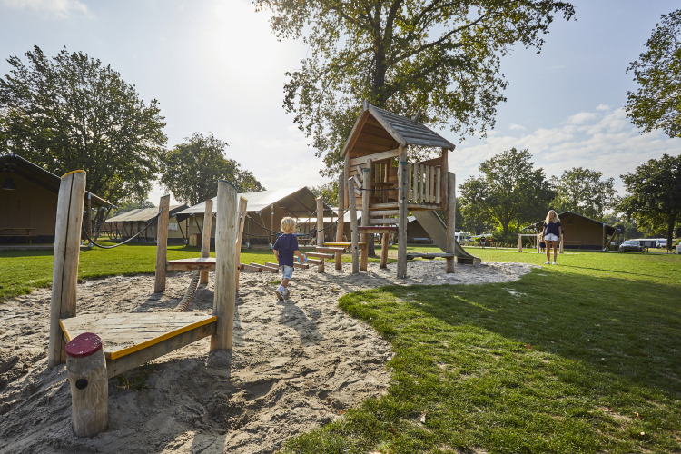 Mama en papa slapen in een dubbel bed met aparte matrassen, de kinderen hebben hun eigen plekje in een stapelbed. Alles draait rond het veldje, waar je gemakkelijk andere gezinnen leert kennen terwijl de kinderen klimmen, glijden en ravotten. Op het overdekte terras geniet je van lange avonden buiten. Inclusief toegang tot de parkfaciliteiten, recreatie-activiteiten en WiFi voor één toestel per reservatie. Kamperen, maar dan echt goed geregeld.
