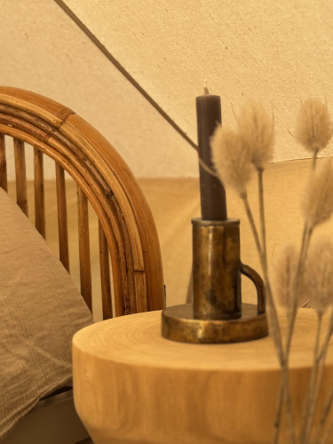 Op Thuysgrond kampeer je in stijl. Onze ruime bell tenten combineren luxe met het buitengevoel. Denk aan een comfortabel bed, sfeervolle verlichting, een Nespresso-machine én je eigen veranda met loungeset. ’s Morgens hoor je de vogels fluiten, ’s avonds geniet je van de sterrenhemel. Met verwarming, wifi en een bluetooth speaker ervaar je alle comfort – midden in de natuur. De ideale plek voor wie tot rust wil komen en toch net dat tikkeltje meer zoekt.
