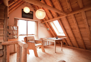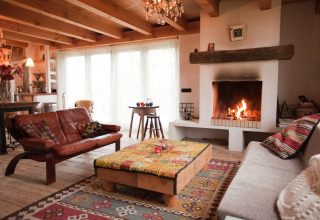 Binnen vind je een warme, comfortabele leefruimte met een haard waar je gezellig samen kan ontspannen na een dag buiten. De open keuken is goed uitgerust voor een eenvoudig ontbijt of een knusse avondmaaltijd thuis. De slaapkamer heeft een comfortabel tweepersoonsbed, een slaapzetel en een eenpersoons boxbed, en er is zelfs een campingbedje voorzien, handig als je met een baby op stap bent. Centrale verwarming houdt het hele huisje aangenaam warm, in elk seizoen.