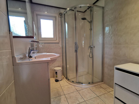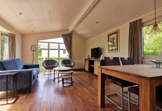 Dit chalet is ideaal voor een vakantie met het gezin. Het is volledig ingericht en voorzien van alles voor een aangename, ontspannen vakantie. In de ruime leefruimte vind je gezellige zitplaatsen voor 4 personen en een flatscreentelevisie. Er is ook een sfeervolle eethoek waar je samen kunt tafelen of 's avonds een gezelschapsspel kunt spelen. In de keuken heb je alles bij de hand om lekkere maaltijden te bereiden, zoals o.a. een koelkast, diepvriezer, combi-microgolfoven, vaatwasser, koffiezetapparaat, waterkoker en Senseo. Deze vakantiewoning is geschikt voor 3 personen en beschikt over twee slaapkamers (één met een eenpersoonsbed en één met twee eenpersoonsbedden). De hedendaagse badkamer is voorzien van een douche, lavabo en toilet.
