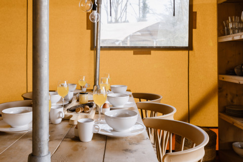 Stap binnen in De Heide Tent, tussen bos en heide waar het avontuur begint zodra je je schoenen buiten zet. Een open en relaxte plek waar het buitenleven centraal staat en de rust meteen voelbaar wordt.
