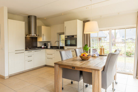 De Wellness Lodge XL is een prachtige accommodatie voor 4 personen met bijzonder veel luxe voorzieningen. Op het gelijkvloers vind je een grote woonkamer met een zithoek, vloerverwarming en gashaard, en een luxe open keuken voorzien van alle denkbare apparaten, waaronder een vaatwasser, een combi-oven en een Illy-espressomachine. De openslaande deuren in het leefgedeelte geven uit op een terras met een loungeset en een parasol. De badkamer is voorzien van een regendouche met een Sunshower, een zalige whirlpool en een traditionele opgietsauna. Op de eerste verdieping vind je twee slaapkamers met luxe boxspringbedden voor een weldadige nachtrust.