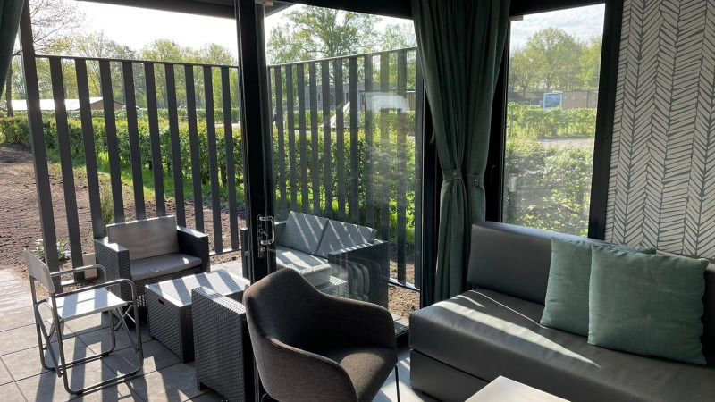 Niet alleen binnen is het ruim en gezellig, ook het overdekte terras met comfortabel tuinmeubilair is een pluspunt van de Cottage Prestige. Breng uren door met het lezen van je nieuwe, favoriete boek terwijl je lekker in het zonnetje op je eigen, privé terras ligt!