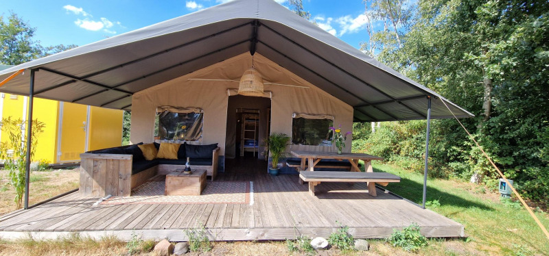 Op safari bij Zomerlicht! Deze glampingtent is geschikt voor maximum 6 personen, met 1 kingsize bed en 4 stapelbedden. De accommodatie beschikt verder over een keuken met kookplaat, koelkast, waterkoker, filterkoffiezetapparaat, kookgerei en bestek. Naast de tent staat privé sanitair ter beschikking. Buiten kan je genieten op de loungebank, een spelletje spelen aan de picknicktafel of een zomerse maaltijd klaarmaken op de mobiele buitenkeuken. Dit alles onder een ruim afdak.