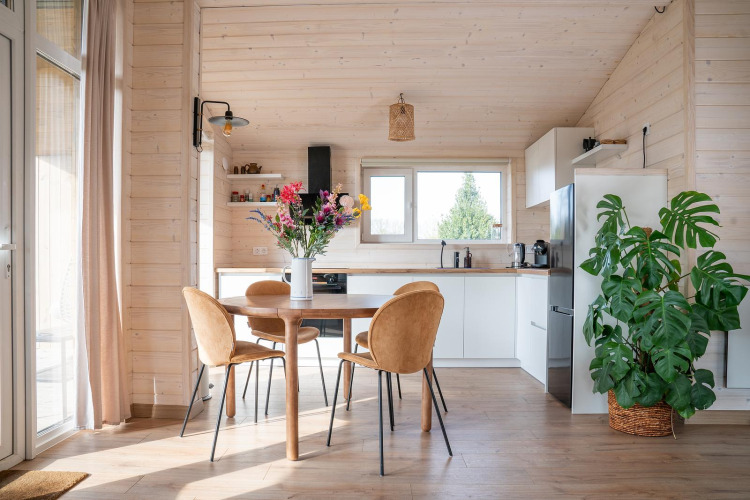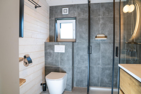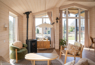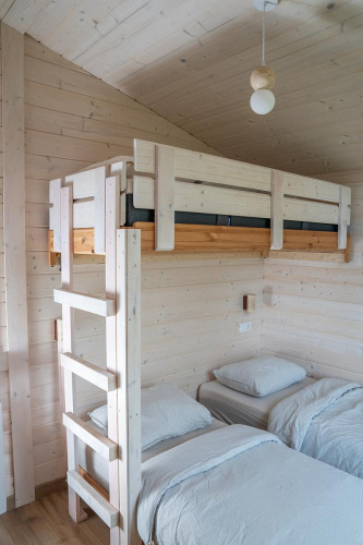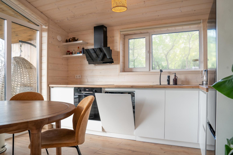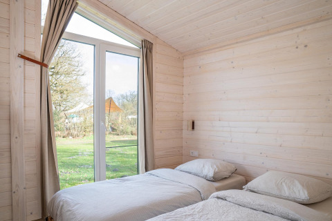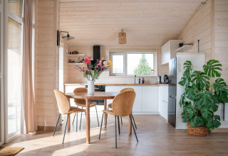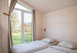 De Slowlodge is geschikt voor 1 tot 5 personen en is voorzien van alle comfort. Grote ramen halen de natuur naar binnen, terwijl natuurlijke materialen en zachte kleuren zorgen voor een warme, rustgevende sfeer. In de gezellige woonkamer vind je een comfortabele zithoek en eethoek, met uitzicht op het groen. De open keuken is volledig uitgerust, zodat je hier bewust én eenvoudig kan koken. Er zijn twee slaapkamers: één met twee eenpersoonsbedden en één met twee eenpersoonsbedden en een hoogslaper. Ideaal voor gezinnen of vrienden.
