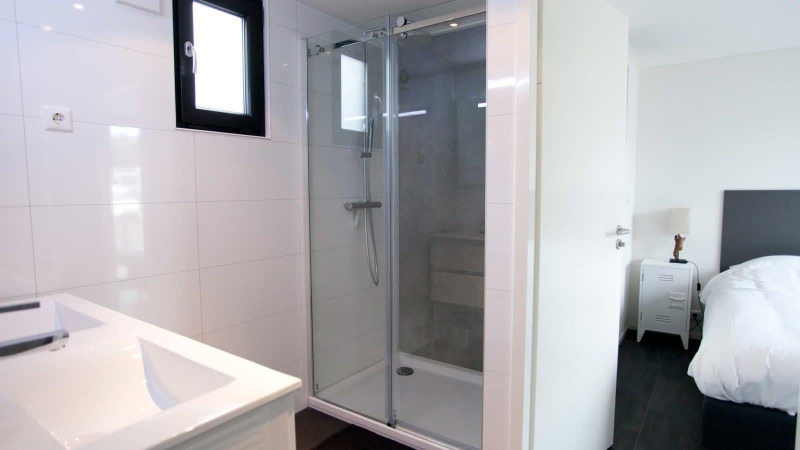 De Cube Exclusif 4 is een stijlvol huis dat gebouwd is onder architectuur. Dat zorgt voor een elegante en exclusieve uitstraling. Dankzij het verhoogde plafond van ongeveer 3 meter en de grote ramen voelt het huis extra ruim aan. De vakantiewoning is volledig gelijkvloers en geschikt voor 4 personen. In de leefruimte vind je een zithoek met televisie, een eetruimte en een schuifdeur die toegang geeft tot het terras met tuinmeubilair. De keuken is voorzien van een gasvuur, microgolfoven, vaatwasser, koelkast met vriesvak en een koffiemachine. In de vakantiewoning zijn er 2 slaapkamers, waarvan 1 met een tweepersoonsbed en 1 met twee eenpersoonsbedden. De badkamer beschikt over een inloopdouche, een toilet en een wastafel. Je kan 1 wagen parkeren aan de woning en er is gratis wifi voorzien.