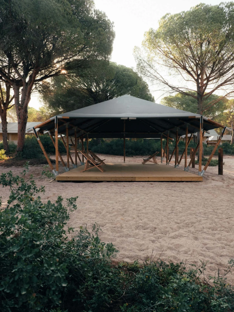Het was niet de eerste keer dat ik in een tent van dit type was en de ervaring kwam niet als een verrassing, d.w.z. alle gemakken van een aparthotel op een camping: warm/koud airco, koelkast, koffiezetapparaat, vaatwasser, complete badkamer, bed/douche linnen, enz. Alles in perfecte staat. Ik was verrast dat je, ondanks dat het midden in een enorm dennenbos lag, in de verte ('s nachts) een weg kon horen, maar niets bijzonders. Dit, samen met de vriendelijkheid van het personeel, zorgde voor een zeer aangenaam en plezierig verblijf.