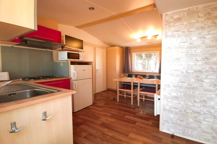 Deze compacte vakantiewoning van 30 m² is slim ingedeeld zodat elke hoek benut wordt en biedt comfortabel plaats aan maximaal 4 gasten. Met twee slaapkamers en één badkamer is het een uitstekende keuze voor een klein gezin, een koppel met vrienden, of voor wie gewoon een rustig stekje dicht bij zee zoekt. De leefruimte beschikt over airconditioning, zodat je kan afkoelen na een zonnige dag aan het strand of op de wandelpaden.