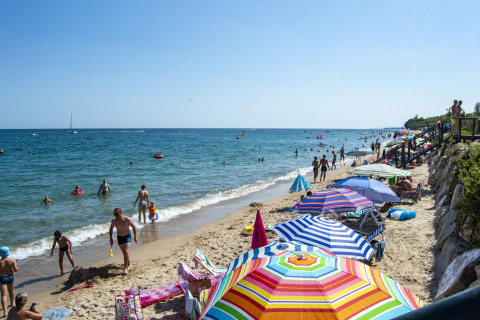 Het grootste pluspunt? Directe toegang tot een privézandstrand van ongeveer 1 km lang. Rol zo uit je bed, wandel een paar stappen en je staat meteen met je voeten in het zand, aan de Middellandse Zee. In juli en augustus is het strand bewaakt, zodat je helemaal zorgeloos kan genieten van de zee. Breng je dagen door met zwemmen, zonnen, strandspelletjes of gewoon heerlijk luieren onder de palmbomen.