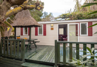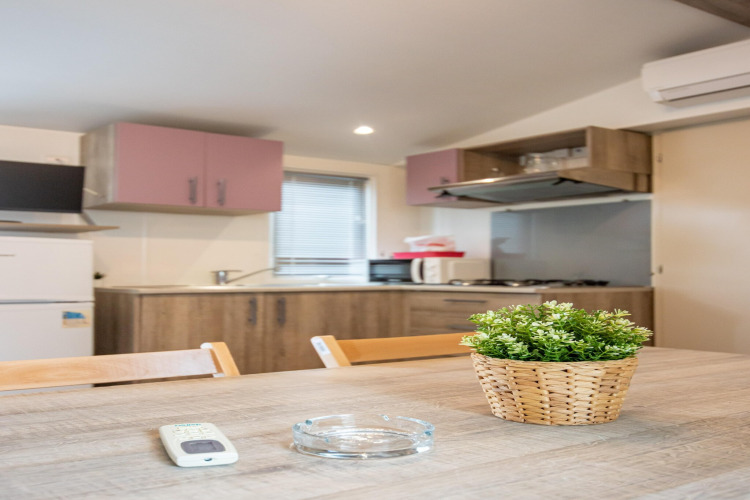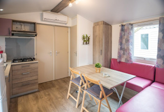 Je cottage is gezellig en praktisch ingericht, met plek voor tot 6 personen en drie slaapkamers op 29 m². Binnen vind je alles wat je nodig hebt voor een zorgeloos verblijf, zoals een microgolfoven voor snelle hapjes of maaltijden. Buiten heb je je eigen privétuintje – ideaal voor een aperitief bij zonsondergang, een rustige ontbijt of een avondlijk babbeltje onder de sterren. Je wagen kan je veilig op het domein parkeren, zo ben je altijd klaar voor een spontaan uitje.
