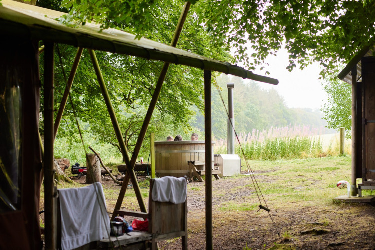 Hoogtepunten van Tenthuisje met warme privédouche naast de tent met Hottub
