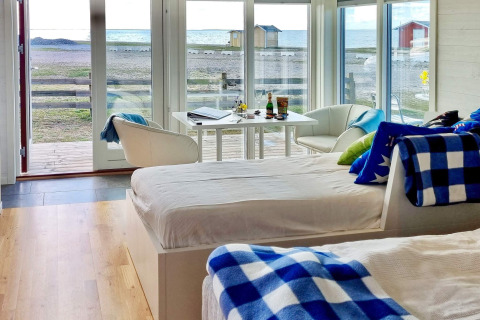 Word wakker met het geluid van de golven en een schitterend, open zicht op zee vanuit dit gezellige vakantiehuisje in Sandvik, op het Zweedse eiland Öland. Vanaf je terras is het amper 75 meter tot aan het mooie kiezelstrand en ongeveer 100 meter tot het zandstrand – ideaal voor een verfrissende ochtendduik of een heerlijke stranddag.