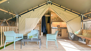 Zijaanzicht tent - Villatent - Camping River - Méolans-Revel, Provence, Zuid-Frankrijk