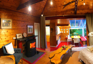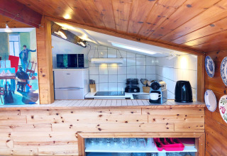Binnen is de sfeer warm en uitnodigend. De houtkachel en elektrische verwarming zorgen ervoor dat het chalet in elk seizoen lekker knus blijft. De compacte, goed uitgeruste keuken bevat alles wat je nodig hebt om op je gemak een eenvoudige maaltijd te bereiden. Liever buiten eten? Steek de barbecue aan en geniet samen van lange zomerse avonden.