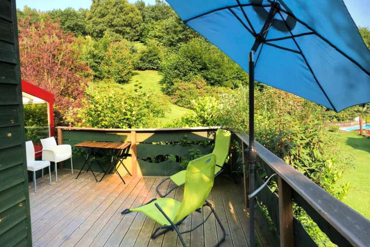 De chalet heeft 180 graden uitzicht op de heuvels, schitterend! Ligt aan een wandelroute. Heel rustig. Fijne ambiance, goed warm te houden met houtkachel en/of radiatoren. We zijn hier voor de 2e keer geweest en waren weer verbaasd over de schoonheid van het gebied!