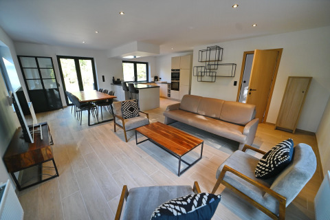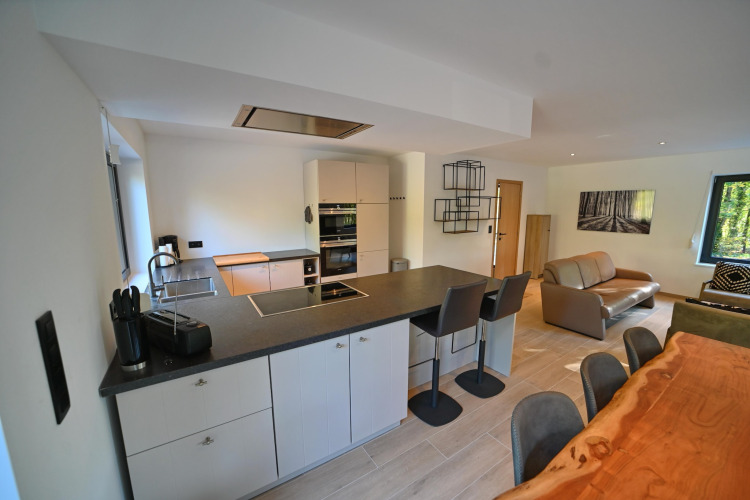Binnen vind je een ruime en lichte woonkamer waar je samen kunt ontspannen na een dag buiten. Plof neer op de comfortabele bank, zet je favoriete programma op met Proximus TV of open een fles wijn en speel wat spelletjes aan de eettafel. De open keuken is volledig uitgerust; dus of je nu een uitgebreide brunch maakt of gewoon een snelle pasta, je hebt alles bij de hand.