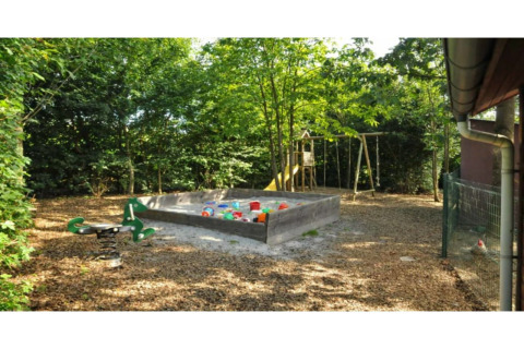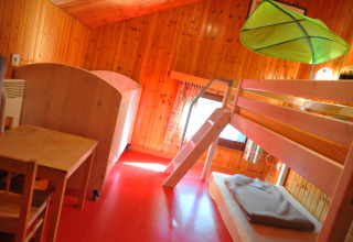 Het echte hoogtepunt is de speelse indeling. Vanuit de kinderkamer leidt een glijbaan rechtstreeks naar een speciale speelkamer – kinderen zijn hier dol op. In de speelkamer vind je een ballenbak en diverse kinderspelletjes, plus een speciale speeltafel met bankjes waar ze kunnen tekenen, spelen of bouwen terwijl jij ontspannen in de buurt bent. Zelfs aan de allerkleinsten is gedacht, met een babybedje dat al in het huis aanwezig is.