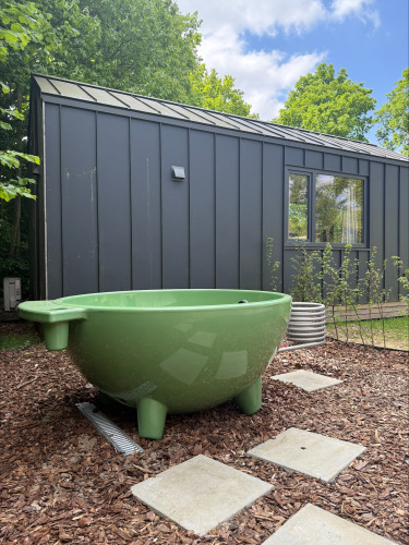 Er staat een dutchtub naast de Tiny Home, volledig privé te gebruiken.