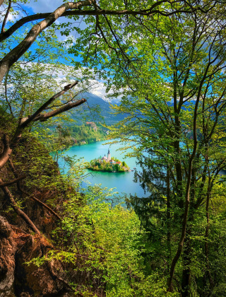 De kerk in het meer van Bled is misschien wel één van de bekendste aangezichten van Slovenië. Het meer is ruim 2 kilometer lang en 1,5 kilometer breed en op een klein eilandje in het midden ligt een oude pastorie uit de 17e eeuw. Het hele jaar door is dit een populaire trekpleister, omdat je er ’s zomers fijn kunt zwemmen en ’s winters goed kunt schaatsen. Met een speciaal bootje kun je vanaf de waterkant het eiland bereiken om de pastorie te bezichtigen.