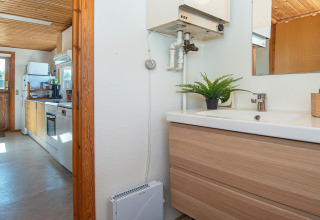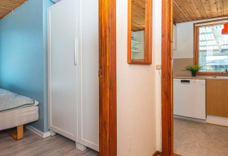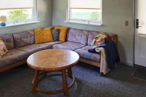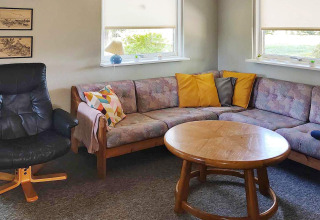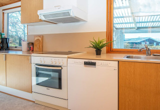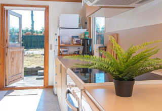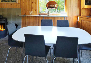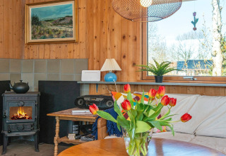 Binnen vind je een lichte en uitnodigende woonkamer waar je heerlijk kunt ontspannen na een dag buiten. Zet je favoriete afspeellijst aan via het Bluetooth-geluidssysteem, kruip met een boek op de bank, of speel samen een gezelschapsspel. Op koelere avonden zorgt de houtkachel voor een heerlijke warme en gezellige sfeer.