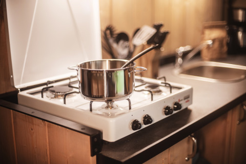 Deze unieke safaritent is van alle gemakken voorzien voor de perfecte glampingvakantie! De tent is voorzien van een gezellige veranda met luifel, om heerlijk buiten te kunnen vertoeven. Hij heeft een compleet ingerichte keukentje met inventaris en bevat een vierpits beveiligd gastoestel. Er is ook een koelkast, een koffiezetapparaat en een waterkoker aanwezig. Daarnaast heeft de safaritent twee slaapcabines. In één slaapcabine staat een tweepersoonsbed (160x200cm) en in de andere slaapcabine staat een eenpersoonsbed en een stapelbed. Alle bedden zijn inclusief dekens en kussens.