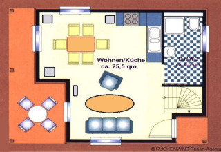 De woonboot is ontworpen voor ontspannen dagen op het water met vrienden. Stap naar buiten op het dek met je eerste kop koffie, kijk hoe de boten voorbij varen en plan je dag op of rond de Bodden. ’s Avonds kun je samen ontspannen met een drankje in de hand, terwijl je geniet van de zonsondergang boven het water – geen drukke wegen, alleen het zachte geluid van de jachthaven.