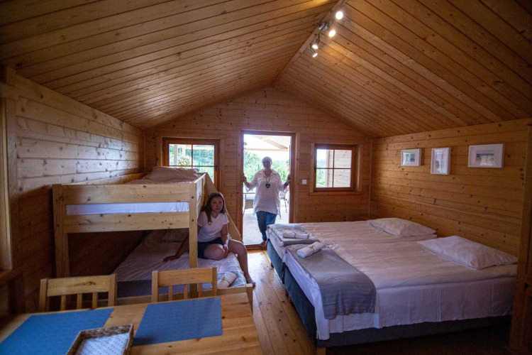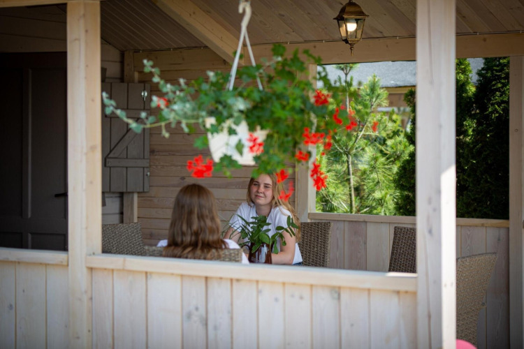 De vakantiehuizen liggen in een klein, rustig complex met een gemoedelijke sfeer. Buiten vind je een zonnig terras waar je kunt ontbijten, een boek kunt lezen of gewoon kunt genieten van de rust. De verzorgde tuin biedt comfortabele zitplaatsen en een gezamenlijke kampvuurplaats – perfect om marshmallows te roosteren, bij te praten tot in de avond en samen naar de sterren te kijken.