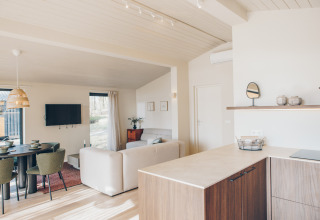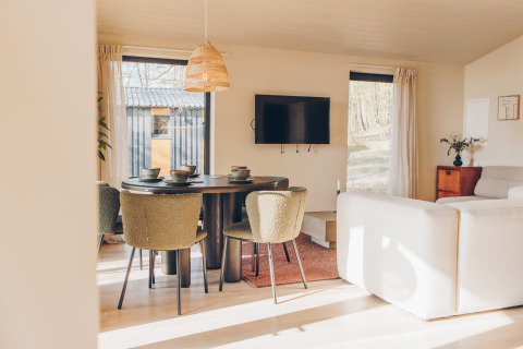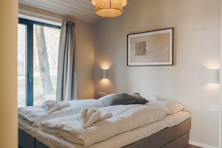 Na een dag buiten kom je tot rust in je eigen privé hottub, met uitzicht op het meer en de groene omgeving. De comfortabele vakantiewoning van circa 56 m² is geschikt voor 5 personen en beschikt over een ruime veranda, twee slaapkamers, een moderne badkamer en een lichte woon- en eetkamer met zithoek. De master bedroom heeft een tweepersoonsbed, de tweede slaapkamer drie eenpersoonsbedden waarvan één hoogslaper. De volledig ingerichte keuken en het terras maken het verblijf compleet. Tijdens je verblijf maak je onbeperkt gebruik van alle faciliteiten op het resort. Welkom bij de Beach Side Scandi met hottub; een ontspannen uitvalsbasis midden in de natuur.