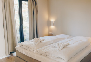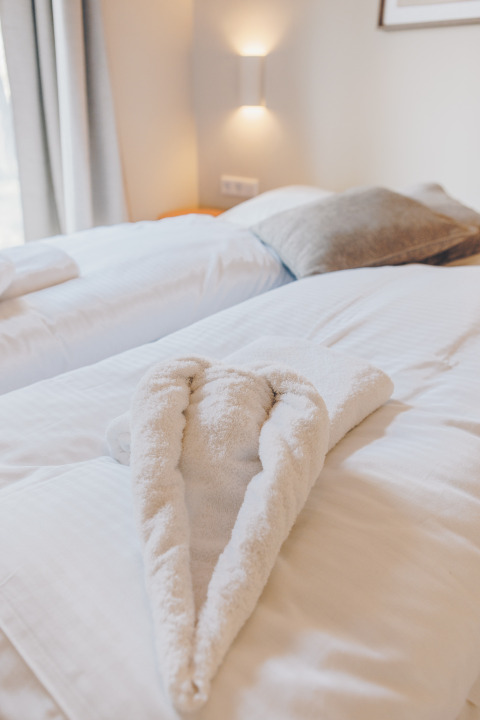 - Bedlinnen met opgemaakte bedden bij aankomst