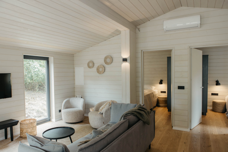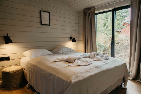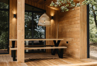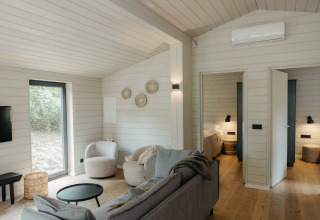 Na een actieve dag in de buitenlucht kun je heerlijk ontspannen in je eigen privé sauna. Deze comfortabele vakantiewoning van circa 56 m² biedt ruimte aan 4 personen en beschikt over een ruime veranda, twee sfeervolle slaapkamers, een moderne badkamer en een lichte woon- en eetkamer met comfortabele zithoek. De twee slaapkamers zijn ingericht met tweepersoonsbedden en fijne kasten met voldoende kastruimte. De compleet uitgeruste keuken maakt het eenvoudig om zelf iets lekkers te bereiden, en buiten op het terras geniet je volop van de frisse lucht en de mooie omgeving.