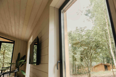 De woning ligt heerlijk rustig en privé tussen de bomen, iets hoger op het park, maar is daardoor moeilijker bereikbaar voor mensen die slecht ter been zijn.
