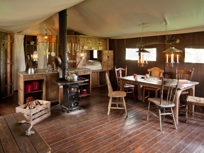 Geen elektriciteit? Dat maakt het juist extra bijzonder! De tent wordt sfeervol verlicht met olielampen en kaarsen, en koken doe je op de houtkachel. Er liggen houtblokken klaar om het lekker warm en knus te maken. Durf jij het aan?