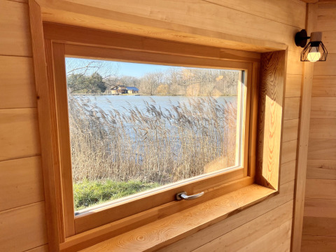 Deze knusse, achthoekige houten chalet ligt direct aan het water en is de perfecte plek voor vier personen. Dankzij de vele ramen met originele vormen baadt de hut in het groen en kun je, comfortabel vanuit je bed, genieten van een adembenemende sterrennacht.