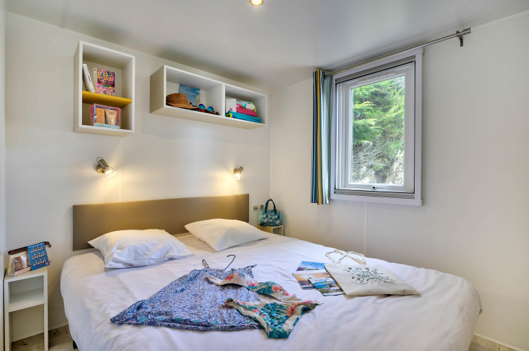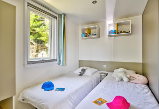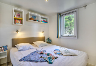 De volledig uitgeruste keuken met mini-oven en bar stelt je in staat om maaltijden te bereiden terwijl je verbonden blijft met de buitenlucht. De lichte woonkamer beschikt over een televisie voor je ontspannende momenten met familie of vrienden. De ouderslaapkamer, met een tweepersoonsbed (160x190 cm), is verbonden met een moderne badkamer. De kinderslaapkamer, met twee eenpersoonsbedden (80x190 cm), is perfect voor een gezin van vier personen of een groep vrienden die op zoek zijn naar comfort.