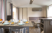 Une semaine de vacances en août 2025 dans un mobile home confort. L'arrivée dans le mobile home fut décevante trace de rouille sur le frigo. Moisissure sur les rideau de la fenêtre du salon., Moisissure également en bas de la tête de lit chambre parentale. On sentait une odeur de renfermé.( Pas été ouvert avant). Camping propre. Piscine agréable et chaude. Une deuxième machine a laver serait bien car 1 seule machine pour tout le camping c'est peu.
