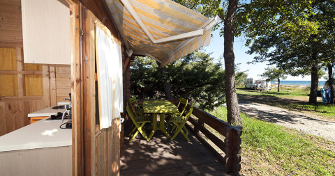 Dit knusse 4-persoons chalet, ideaal voor 2 volwassenen en 2 kinderen, ligt op slechts 20 meter van de zee en biedt een unieke plek voor een ontspannen vakantie aan de Middellandse Zee. De compacte maar functionele inrichting maakt het chalet perfect voor gezinnen, zonder in te leveren op comfort en sfeer.