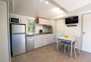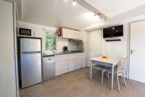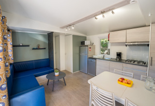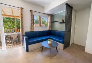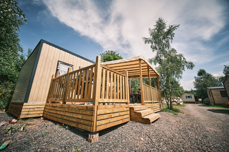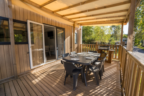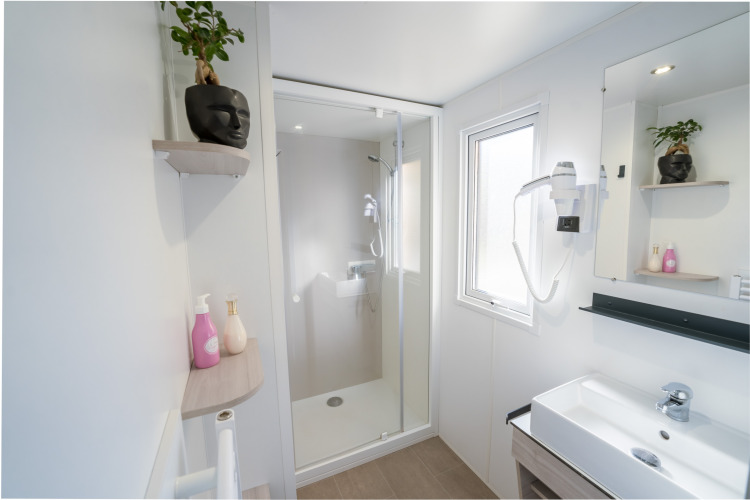 Stacaravan van 36 m² Premium Privilege met een halfoverdekt terras van 23 m² uitgerust met: