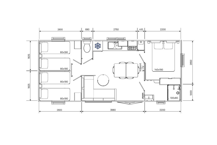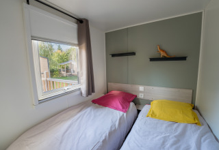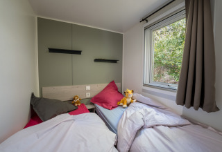 - een aparte slaapkamer met twee eenpersoonsbedden van 80x190 cm en opbergruimte
