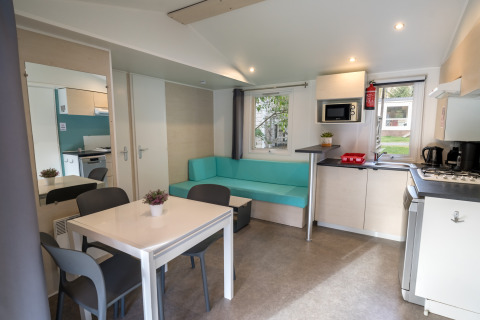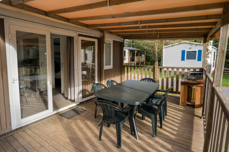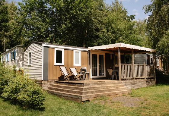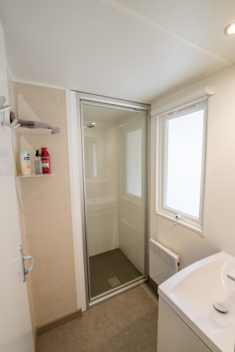 31m² Premium stacaravan met 23m² halfoverdekt terras uitgerust met: