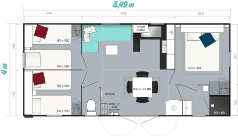 - een aparte slaapkamer met twee eenpersoonsbedden van 80x190 cm en opbergruimte