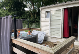 Er is een privé jacuzzi, voor onbeperkt gebruik, op het terras direct voor de bungalow! Je verblijf zal er een zijn van welzijn en ontspanning.