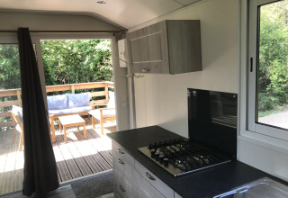 Het Château heeft een mooie keuken met gasfornuis, magnetron, koelkast, servies en bestek, evenals een heerlijke doucheruimte. Een groot houten terras, tuinmeubilair, luifel en jacuzzi. Het plezier kan beginnen, en het enige wat je hoeft te doen is je koffers neerzetten... en de gedeelde barbecue vinden om in de avond te grillen! Vergeet je houtskool niet!