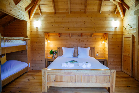 Een terras, ofwel balkon, waar je heerlijk van een kop koffie kunt genieten. Bestel een maaltijd of aperitief en laat deze via een kabelsysteem in een mandje naar jouw hut vervoeren. Het verblijf heeft een eigen badkamer met douche en toilet. Het slaapgedeelte heeft een tweepersoonsbed (160x200) en een stapelbed (90x190). Er is geen keuken. Maak gebruik van de bestel mandjes en ontspan optimaal van je tijd in de natuur.