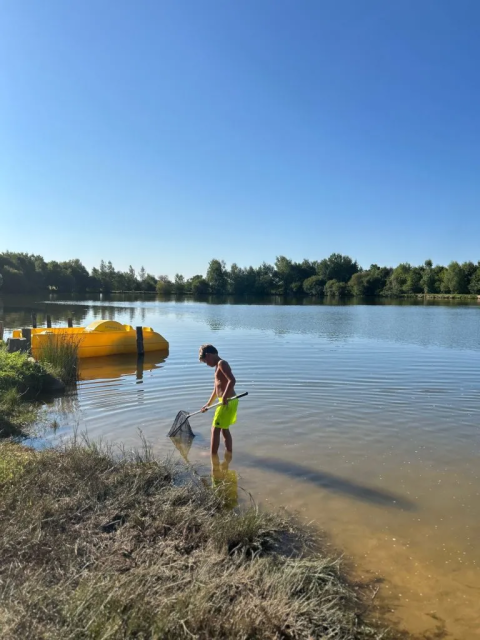 Ja, op het park vind je een buitenzwembad en een bij een meer.
