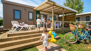 - Is er een zwembad op Flower Camping Les Ilates?Ja, op het park vind je een buitenzwembad en een peuterbad. Een badmuts is niet verplicht. Er is een waterglijbaan.