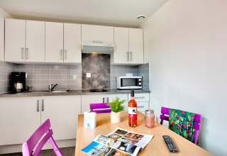 De Huis Comfort met 2 kamers is een comfortabele en volledig uitgeruste accommodatie van 31 m², perfect geschikt voor een verblijf met 4 personen. Binnen vind je twee slaapkamers: één met een tweepersoonsbed en één met twee eenpersoonsbedden. De woonkamer beschikt over een gezellige zithoek, een eethoek en een televisie. De keuken is voorzien van alle gemakken, waaronder een koelkast, vriezer, inductiekookplaat, magnetron, koffiezetapparaat, sinaasappelpers, afzuigkap en een compleet inventaris. Daarnaast is er een eigen badkamer met warm stromend water, een apart toilet en elektrische verwarming. Buiten geniet je van een privéterras met parasol en tuinmeubilair. Je kunt direct bij de accommodatie parkeren, wat zorgt voor extra gemak tijdens je verblijf.