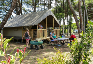 Een glampingervaring in deze Tente Lodge Confort, dicht bij de natuur.