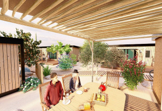 Schuif de deuren open en stap op je privéterras, ingericht met tuinmeubilair. Begin je dag met verse koffie in de zon, geniet van een lange lunch buiten, of open een fles lokale wijn terwijl het 's avonds afkoelt. Het gedeelde zwembad op het park is de ideale plek om even af te koelen tussen de strandbezoeken door.