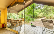 Nous avons passé un très bon séjour dans ce camping malgré la chaleur. Les propriétaires sont très sympas et font tout pour qu'on se sente bien. Les tentes (nous safari) sont bien. Attention, le terrain est en pente et la terrasse est un peu en hauteur avec une grosse marche. Ça peut être compliqué avec des tous petits. L'endroit est calme et dans la forêt. On s'y sent bien. Le seul point "négatif" (car c'est relatif), c'est que l'accès "privilégié" à la rivière n'est pas dans le camping. On doit prendre la voiture. Sinon c'est 30min à pied et ça remonte fort pour le retour. Nous aurions préféré le savoir avant car avec les enfants, c'est qd même compliqué sans la voiture. Mais la baignade la plus proche est juste géniale😁.